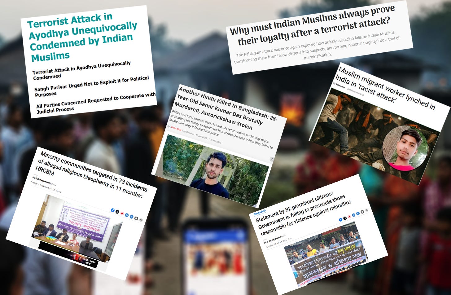 In December 2025, a Hindu man was beaten to death in Bhaluka, Mymensingh, over blasphemy allegations in Bangladesh. In October 2025, senior Indian political leaders made openly communal statements, while Muslim localities in Cuttack, Odisha, were vandalized following a religious procession. In July 2025, demolition drives in Assam displaced thousands of Bengali-speaking Muslims during the monsoon. Earlier, in May 2025, more than 7,000 mostly Muslim homes were demolished in Ahmedabad, and between May 7 and 9, Indian border forces pushed hundreds of Muslims and Rohingya refugees into Bangladesh. These incidents show how violence, state action, and public rhetoric affected minorities in both countries.